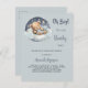 For a baby shower celebrating a baby boy. A blue grey background. A cute teddy bear sleeping on a cloud. Personalize and add the name of the mom to-be and party details. The name and the text: Oh Boy! and Bearly are written with a hand lettered style script.