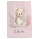 Cute watercolor teddy bear decoration design for baby shower or birth announcement. You can change the background easily for blue if you are having a baby boy.