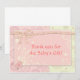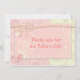 A thank you note that I created specifically to go with the matching invites. Pretty pinks and soft yellows and a cute bird.