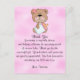 It's a Girl! Adorable personalized baby Boy baby shower thank you card. Just fill in the details and you're all set to go. Baby pink background, a lovable baby teddy bear holding a baby bottle. Thank you sentiment that reads: "Thank you for coming to my baby shower and helping celebrate the upcoming arrival of our new baby. Thank you for the wonderful gift. Your kindness and generosity are greatly appreciated. We look forward to introducing our little one soon." All our products can be custom designed to meet your needs at no extra charge. Simply contact us through our store. Coordinating products available: Just ask us!