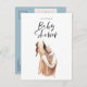 Baby shower watercolor illustration simple script. Natural blue gender unknown modern baby shower invite. Part of a indie collection.