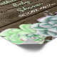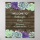 Personalized Baby Shower Welcome Sign. This rustic, botanical design features garlands of watercolor succulents and foliage, forming an attractive border for your custom text. The sample wording reads "Welcome to [name's] Baby Shower [date]" and the template is set up ready for you to edit this to suit your special occasion. The poster is printed in a gender neutral colour palette, with shades of green and purple on a background of country barn wood. A trendy and elegant choice for either a baby boy or baby girl baby shower.