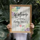 Baby Shower Welcome Sign Poster Templates - Elegant lovely Watercolor Succulent Plants on White Rustic Wood Background.