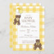 Baby Shower Yellow and White Plaid Teddy Bears Invitation