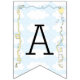 Baby Shower "Yellowk/Blue/Castle" design, Swallowtail shaped, Bunting Banner. This Yellow/Blue/Castle, baby shower banner is made up of 16 customizable swallowtail shaped flags. Personalize the text by choosing your favourite font colour, size, style and wording.