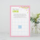 This Baby Bingo card is a fun activity for any Baby Shower. This card comes in a pink colour scheme, featuring colourful confetti. The perfect addition to a Baby Shower or Baby Sprinkle party!