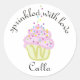 Sprinkled with love! Embellish your sprinkle notes or invites with this large Baby Sprinkle Cupcake sticker, made to match our Baby Sprinkle Invitations and gifts. Each sticker features a cute pink cupcake with multicolored sprinkles design. Sticker can be easily customized with your own name. Design coordinates with our baby shower and sprinkle favours available at GCDSpa.com.