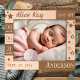 Personalized Baby birth information, statistics, cute star, etched wood frame.