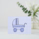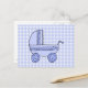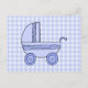 Baby Stroller. Light Blue on Check Pattern. Postcard