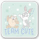 his adorable Looney Tunes graphic titled "Team Cute" features Bugs Bunny and the Tasmanian Devil (Taz) in a playful winter scene. Illustrated in a soft, sketch-like style, Bugs and Taz exude charm and warmth against a gentle mint green background adorned with snowflakes and dots. Bugs, ever the rascal, seems to be teasing Taz with a snowball, while Taz, in a rare moment of calm, appears bewildered yet endearing. This delightful depiction captures the lighter, sweeter side of these iconic characters, making it a perfect addition to any Looney Tunes collection or a wonderful seasonal decoration to bring joy and laughter during the winter months.