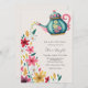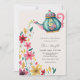 Baby Shower invitation featuring a border of multicolor flowers with greenery flowing from a cute whimsical teapot. Customize with your information for the mom to be. Click "click to customize further" to change the font style, size or colour.