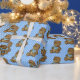 Cute brown teddy bear with blue bib on polka dots for baby boy gift