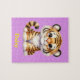 This kid's puzzle with purple background and a baby tiger can be personalized with your child's name.