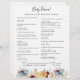 This baby shower game card features beautiful soft watercolor pumpkins & florals in shades of dusty blue and white that are balanced with sweet orange and burgundy purple, making it a warm and airy palette. Change background colour or add graphics to match your shower theme. Need coordinating graphics please contact me for a custom order. Of course it's not required that you play games at the baby shower, but consider this: You're going to have an all-ages group, and most of the guests have probably never met one another before the party. Mixing in a few of these classic baby shower games is a perfect way to break the ice. These professionally designed cards are quickly customizable. Add your custom wording to this design by using the "Edit this design template" boxes on the right-hand side of the item, or click the blue "Customize it" button to arrange the text, change the fonts and colours and to also add additional information or images to this design. Click "Customize Further" to open full editing options. If you need any coordinating items, (thank you cards, etc.) please contact me for a custom order. ****For custom requests you need my help with, do not place this merchandise in your cart. Instead, email me your request at lauralise@iyhtvdesigns.com A link to your merchandise will be emailed to you once the item is available. You can use that link to place your order. Please allow up to 48 hours.