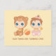 Baby Twins First Birthday Girl Bear Invitation 2 Postcard