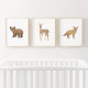 Add a finishing touch to your little one's woodland themed space with this set of three bear cub, fawn, and fox prints.