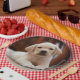 Baby Yellow Labrador Puppy Dog laying on Belly Paper Plate