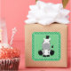 This sticker features a green border of a repeating pattern of jungle leaves. A cute baby clipart grey zebra sits in the centre of the sticker over a solid green background.