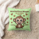 Super gift idea for birth: a cushion with a sweet monkey and heart. Personalize the pillow with the baby's name, day of birth, time and weight and size.