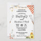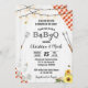 BabyQ shower invitations gender neutral theme. A bun is in the oven & burgers on the grill! Perfect for a backyard BBQ baby shower.