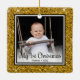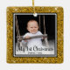 This lovely Baby's 1st Christmas photo ornament with a gold glitter edge, the words "My 1st Christmas", your child's name and the year will look beautiful on your tree. You'll cherish it and enjoy taking it our every year to put on your tree.