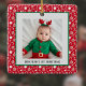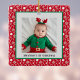 This charming design features a red and white peppermint and candy cane border, with a frame for your baby's or grandbaby's photo. Replace the placeholder photo with your own square photo, and update the text with your baby's name. It's easy to do! The photo is has a white border that's trimmed in a contrasting green for a festive look. What a great gift for grandma and grandpa, nona and pappa, mom-mom and pop-pop, and so on!