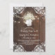 Rustic country rehearsal dinner invitation features string lights, mason jar, baby's breath flowers, wood, and lace