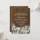 Rustic chic wedding invitation done in a dark wood look with graphics of white baby's breath flowers, along the bottom. Personalize all the text for your special day. Lovely invitation you will cherish for years to come.