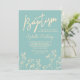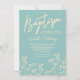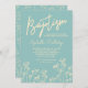 Beautiful floral baptism invitation with the silhouette of hand-drawn delicate baby's breath against a robin's egg blue background. Baptism and the invitation text is written in a creamy off-white. The baptism invitation has a vintage feel in colour and illustration. The back features a pretty pattern of off-white baby's breath.