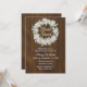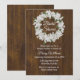Rustic chic square bridal shower invitation done in a dark wood look with graphics of white baby's breath floral wreath. Personalize all the text for your wedding event. Lovely invitation the bride will cherish.