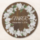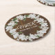 Rustic chic wedding pulp board paper coasters done in a brown wood look, with graphics of a white baby's breath floral wreath. Personalize the white text to suit your needs. Great for any wedding event and makes nice little favours for your guests.