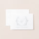 Elegant white folded card with your monogram in a beautiful script inside a baby's breath wreath, with your name beneath in stylish letters.
