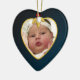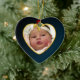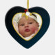 Baby's Dark Blue Photo Keepsake Christmas Heart Ceramic Ornament