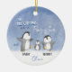 Celebrate your baby's first Christmas in a truly special way with our Custom Baby's Cute First Christmas Ornament. This adorable ornament is personalized with monogram names, creating a unique memento that will be cherished for years to come. Featuring an adorable penguin family nestled in a winter snow scene, it is the perfect addition to your holiday decor. Whether you're a mommy, daddy, or a family of three, this ornament captures the joy and love of your first Christmas together. Start a new tradition and create lasting memories with our custom ornament..