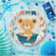 This adorable illustration captures the joy and innocence of a baby celebration. A cheerful bear, wearing only a diaper, sits happily in a bath tub, surrounded by festive decorations, animal friends, and sweet treats. The bright colours and playful characters create a whimsical and heartwarming scene perfect for welcoming a new little one.