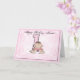Fully customizable text, this sweet baby girl's first birthday with a pink scroll background.