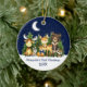 Baby's First Christmas Watercolor Woodland Forest Animals Pine Trees, Moon, Starry Sky and Snow Ornament. Animals include Bear, Deer, Baby Deer with Blue Bow, Moose, Raccoon, Bunny Rabbit with forest greenery. Add Name.