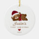Simply perfect Baby's First Christmas ornament featuring a sweet sleeping teddy bear wearing a scarf and Santa hat. Easy to personalize with your name & year.