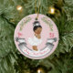This sweet vintage ruffle tutu, crown, & pearls baby girl (dark skin tone/ black hair ponytail) "Baby's First Christmas" custom / year / name / birth date & weight circle ceramic tree ornament features baby girl colours in pink and red, with light blush pink background and watercolor holly branches - on both front and back side. Perfect holiday gift for first Christmas as mommy & daddy, parents, grandparents, Godparents, aunts & uncles! We selected comforting soft colours in a chic & trendy style with light blush pink, Christmas red, green, gold & silver to create a merry little Christmas tree keepsake. **See my storefront for more baby skin & hair colours!! Wording, fonts, and font colours can be changed to suit your preference, simply click the blue "edit using design tool" button in the Personalize screen and make it yours! Custom design requests or template questions are always welcome - click the "message button", or email: contact@figandlilyco.com. Thank you ♥