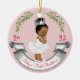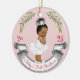 Baby's First Christmas Black Hair Crown Pink & Red Ceramic Ornament