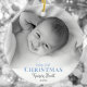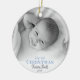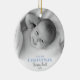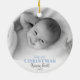 Baby's First Christmas Ceramic Photo Ornament — Personalize this simple round holiday decoration with a picture of any precious newborn. The template allows for customization of the name and birth year as well. Both sides of the ornament are identical. Each edit changes the back and front, together.