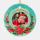 Celebrate a milestone with this stunning personalized photo Christmas ornament! Featuring a gorgeous teal background with sparkling gold accents and a festive wreath of poinsettias, holly, and candy canes, this ceramic ornament is the perfect way to display a treasured photo of your baby in their Santa outfit. Personalize it with the year ("20xx") to commemorate your little one's very First Christmas. A beautiful keepsake for new parents or a thoughtful gift for grandparents.