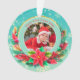 Celebrate a milestone with this stunning personalized photo Christmas ornament! Featuring a gorgeous teal background with sparkling gold accents and a festive wreath of poinsettias, holly, and candy canes, this ceramic ornament is the perfect way to display a treasured photo of your baby in their Santa outfit. Personalize it with the year ("20xx") to commemorate your little one's very First Christmas. A beautiful keepsake for new parents or a thoughtful gift for grandparents.