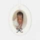 Celebrate your little one’s first Christmas with this timeless keepsake ornament, featuring a minimalist design accented by a charming hand drawn bow detail. The clean layout and soft neutral tones of ivory and muted black create a warm, elegant look that complements any holiday décor. Personalize with your baby’s name and year on the back to create a treasured memento for your tree or a thoughtful gift for new parents.