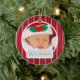 Baby's First Christmas Mod Stripes Pattern Red Ceramic Ornament