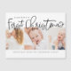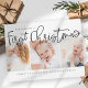 Design at the front consist of playful cursive typography of "First Christmas". Add a custom photo of your new baby and add baby's and family name. This design is modern, chic, playful and fun.