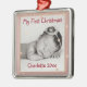 A Baby's First Christmas Ornament, with their name and year. Designed with gold coloured stars and soft pink border. To personalize, using our easy template, simply insert your favourite baby image, and click FILL to cover the area. Next enter the name and year within the template, replacing the sample text. You can adjust the location of the text: My First Christmas, and the Baby's Name and Year, to ensure they are positioned as you like. Should you wish to change the text colour, simply use our Colour-Picker-Tool. It's fast and easy. Enjoy!