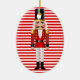 Nutcracker against a red and white striped background on the front. Personalize the back with the name of your child and the year.