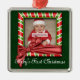 Create a unique family heirloom when you add your photo to this adorable ornament featuring a candy cane striped frame in red and green tied with a red satin ribbon. Background is festive green with room for personalization.