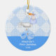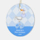 Baby's First Christmas Ornament features an adorable stork carrying a baby boy bundle set on a blue & white polka dotted background! Personalize with your baby information and date and you're all set to go! Wonderful dated keepsake gift for your baby's 1st christmas. graphics©delightful-doodles